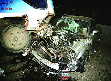 7日零時10分許,一車牌為魯BME5XX的奧迪TT跑車,在沿東西快速路由東向西方向行駛至三百惠附近時,因超車與前方一輛同向行駛的中巴車相撞,由于沖擊力巨大,兩車騰空而起飛出數(shù)米遠(yuǎn)后墜地,落在一輛原本與中巴車并列行駛的出租車前!拔疫沒反應(yīng)過來,就聽到‘砰’一聲,兩輛車從天而降,落在我的車前方不遠(yuǎn)處,我趕緊剎車!笔潞蠼邮芙痪{(diào)查的目擊者、一名出租車司機(jī)回憶道。據(jù)另一位目擊者王先生稱,當(dāng)時他駕車以每小時90公里的速度行駛,只見一個銀灰色的影子從自己車后竄到前面,估計(jì)車速在每小時140公里以上,該車與前面的中巴相撞時,沒有采取任何減速措施,基本是踩著油門撞上的,隨后就見到一白色的影子被甩出奧迪車,摔在路上。