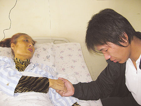 其實(shí),早在2006年,在母親患病中期,兒子常津銘就從網(wǎng)上查到關(guān)于肝臟移植手術(shù)的資料,但沒(méi)想到母親的病真的發(fā)展到這一步。當(dāng)看著往日的漂亮媽媽皮膚黑黃,人也越發(fā)消瘦,兒子的心里難受極了。他安慰母親:“老媽,你放心,需要換肝我一定給你!碑(dāng)時(shí),媽媽愣住了:“兒啊,你胡說(shuō)什么,媽都這么大年紀(jì)了,你以后的路還長(zhǎng)著呢!”“不行,老媽,我能救你而不救,我會(huì)遺憾一輩子的!”