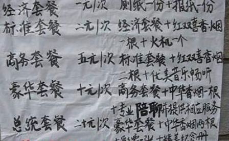 據(jù)悉,告示上將該項(xiàng)服務(wù)分為五個(gè)等級(jí),分別是經(jīng)濟(jì)套餐、標(biāo)準(zhǔn)套餐、商務(wù)套餐、豪華套餐、總統(tǒng)套餐。每個(gè)套餐還列出了各自的服務(wù)項(xiàng)目。例如經(jīng)濟(jì)套餐就贈(zèng)送廁紙一份、報(bào)紙一份,收費(fèi)也相當(dāng)?shù)土瑑H僅需要一元;2元的標(biāo)準(zhǔn)套餐則在經(jīng)濟(jì)套餐的基礎(chǔ)上送出紅雙喜香煙一根火機(jī)一個(gè)。最雷人的應(yīng)該算是價(jià)值10元的豪華套餐,竟然有專業(yè)陪聊的服務(wù)項(xiàng)目。而20元的總統(tǒng)套餐也讓人摸不著頭腦,居然包括彩票一張和精美紀(jì)念冊(cè)。這些都讓網(wǎng)友們好奇不已:不知道當(dāng)你如廁的時(shí)候,有人在一旁陪你談心,會(huì)是什么樣的感受?而精美紀(jì)念冊(cè)的內(nèi)容,又會(huì)是什么?