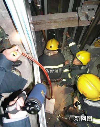 21時21分,消防官兵到場后發(fā)現(xiàn),事故現(xiàn)場是一幢在建的高層住宅樓,據(jù)安裝電梯的一名負責人講,事發(fā)前電梯停在28樓,當時有兩名工人在電梯內(nèi)施工,其中一名在轎廂頂部,另外一名則在轎箱內(nèi)部,電梯突然失去控制后向下墜落,一直墜到了底層,兩名工人全部被困。電梯間內(nèi)則堆滿了鋼絲繩和一些零部件,轎箱根本無法向提升,現(xiàn)場的工人們只把轎廂上面的那名工人救了出來,而轎廂被壓在了底層,加一名工人仍被困在轎廂內(nèi)。
