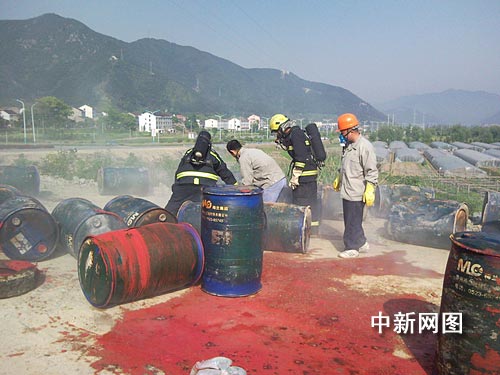 中新網(wǎng)臺(tái)州4月28日電(記者 江耘 通訊員 陳瑛子) 4月28日一大早,浙江臺(tái)州三門縣環(huán)保局便接到群眾舉報(bào),在該縣海游鎮(zhèn)潺岙村附近的公路上發(fā)現(xiàn)大量塑料桶包裝的不明液體,十分刺鼻,疑似有人非法轉(zhuǎn)移、傾倒化工廢液。