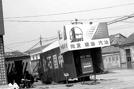 在小王鄉(xiāng)、佘家巷鄉(xiāng)、信陽鄉(xiāng)、柳堡鄉(xiāng)、水灣鎮(zhèn)、碣石山鎮(zhèn)、埕口鎮(zhèn)、車鎮(zhèn)、馬山子鎮(zhèn)等鄉(xiāng)鎮(zhèn),無一不存在“黑加油站”。有的將油罐高掛在墻壁上,管子順下來打開閥門就加油;還有的自己制造加油機(jī),外表與壓水井差不多;有的則干脆擺幾個(gè)塑料桶就干起加油營生;還有的像大篷車似的等等,不一而足。
