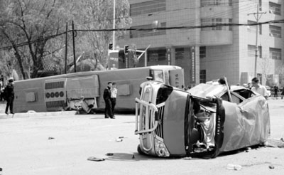 因大巴車司機也在車禍中受傷,記者沒能向他核實車禍起因。目前,警方已經(jīng)介入,車禍的真正原因正在進一步調查中。 (本報主任記者 劉強 實習生 王健 攝影 主任記者 沈生)