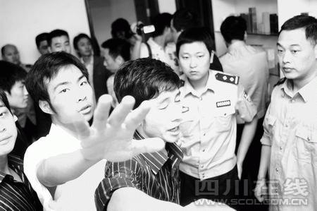 當(dāng)民警指出媒體有采訪的權(quán)利,并要求在場人員配合執(zhí)法時,現(xiàn)場逐漸恢復(fù)了平靜,執(zhí)法人員開始逐一登記在場人員的身份證。就在這時,一名戴眼鏡、穿西裝的男子出現(xiàn)在房間內(nèi),他表現(xiàn)得非常不爽:“我們哪里違法了嘛?”對此,執(zhí)法人員告訴他涉嫌傳銷,正在調(diào)查,要求配合。但該男子態(tài)度非常強硬地告訴身邊人員,他們所從事的活動并沒有違法。見記者拍照,他再次召集人員強行阻止拍攝。民警要求他配合執(zhí)法,并出示公民身份證,“我是一個公民,有權(quán)不出示身份證!边@名梁姓男子道。記者隨后得知他是成都某大學(xué)大三的學(xué)生。