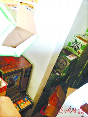 在一家叫“祥瑞豐”的百貨店里,小店內(nèi)一名女工作人員,還領(lǐng)著記者來到店內(nèi)偏僻處。她掀開層層廢紙板后,露出一臺藏匿其中的老虎機,“他們讓我偷偷藏在這里的”。