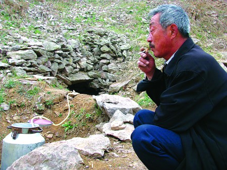 跟他一樣到山上取水的人有很多。記者了解到,曲家蘆村依山而建,除了靠山比較近、地勢(shì)較高的部分人家水喝起來尚未發(fā)覺有什么異樣之外,其余村民家的水都沒法飲用,而 20多個(gè)患癌癥的村民也都住在地勢(shì)較低的地方。