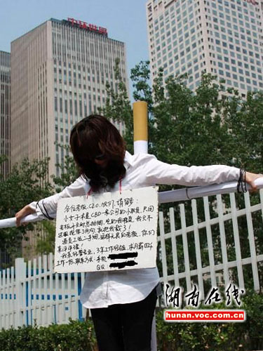 不滿老板抽煙被辭 女子自縛十字架求職(圖)