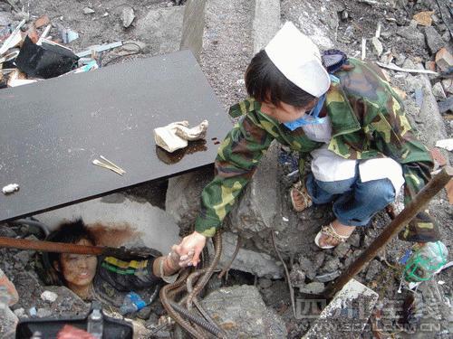 化妝師一眼就認(rèn)出了顧云仙,那張“最美女護(hù)士”照片已經(jīng)讓她變成了名人。去年5月14日上午,在北川中學(xué)救援的顧云仙被鏡頭定格下這樣的一幕:她腳穿涼鞋,蹲在廢墟邊上,左手提著一袋血漿,右手和一名少年的左手緊緊握著;而那名少年正被扭曲的鋼筋、預(yù)制板死死壓著,眼神里流露出對(duì)生的強(qiáng)烈渴望。網(wǎng)友們把這一幕稱(chēng)為“汶川大地震中最感人的十大鏡頭”,顧云仙因此成了“最美女護(hù)士”,并獲得全國(guó)總工會(huì)頒發(fā)的“五一勞動(dòng)獎(jiǎng)?wù)隆薄?/p>
