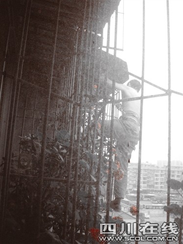 昨日早上6點(diǎn)過(guò),成都站北東路144號(hào)居民陳先生被一陣嘈雜聲驚醒,“有賊娃子上來(lái)了!”樓下掃地的萬(wàn)婆婆大聲呼喊。陳先生走出臥室,赫然發(fā)現(xiàn)書(shū)房的防護(hù)欄外,站著一個(gè)身穿黑色外套的中年男子……