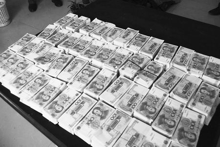 5月11日下午6時(shí)許,民警把兩名犯罪嫌疑人王某和趙某(系羅某次子)抓獲,在兩個(gè)編織袋中共起獲HB90版百元面值假幣250萬元。