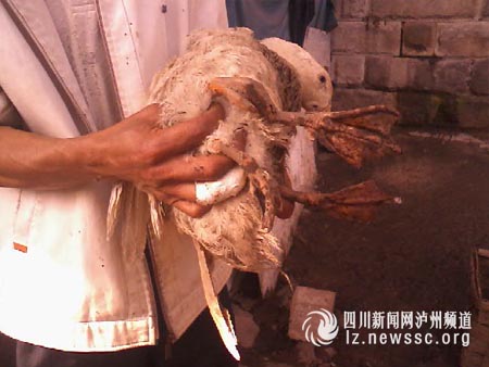 王智昇,家住納溪永寧河邊,是納溪第一個(gè)吃低保的特困戶,平常以養(yǎng)鴨子為生,因他家中出現(xiàn)一只與鴨不同的鴨,該鴨全身白色,初見時(shí)不細(xì)看,未發(fā)現(xiàn)有何不同之處,經(jīng)過仔細(xì)觀察后發(fā)現(xiàn),該鴨確實(shí)與眾鴨不同,原來這只鴨子有四只腳,兩腳在地上行走,另外兩只腳隱藏在靠近尾部的背上,時(shí)隱時(shí)現(xiàn),待主人將鴨子抱起,弄開尾部羽毛,才露出廬山真面目,隱藏的兩只腳清晰可見,形狀與行走的兩只腳沒有什么差異。區(qū)別僅僅是由于隱藏的兩只腳未進(jìn)行功能鍛煉,行走只是顯得略微小心。