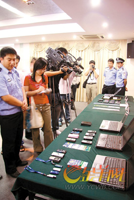 5月11日,警方在珠海將邱×麒(境外人員)、左×海(湖北人)等4人抓獲歸案,繳獲作案用的手機20臺、銀行卡200多張、手提電腦兩臺、贓款5萬多元。5月15日,警方再度出擊,在廣州白云機場將莊×(女)帶回審查。另外,深圳、浙江金華警方根據(jù)海珠區(qū)警方通報的信息,抓獲鄒×洋(境外人員)、袁×娜(女)等5人。
