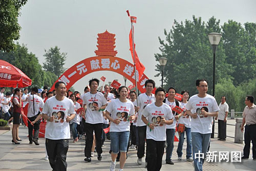 當(dāng)日,湖北籍奧運(yùn)冠軍楊威、高崚的帶領(lǐng)下,近300名武漢市民組成“漢口”、“漢陽(yáng)”、“武昌”三個(gè)愛(ài)心方陣,手持“捐一元,獻(xiàn)愛(ài)心送營(yíng)養(yǎng)”的小紅旗,身著統(tǒng)一的獻(xiàn)愛(ài)心T恤,沿著漢口江灘跑步前進(jìn),沿途不斷地向周邊行人和游客發(fā)放愛(ài)心貼紙,呼吁更多的武漢市民參與到該項(xiàng)活動(dòng)中來(lái)。