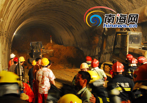 在施救現(xiàn)場(chǎng),三亞市長(zhǎng)市長(zhǎng)助理、公安局局長(zhǎng)王少山接受南海網(wǎng)記者采訪時(shí)說(shuō),由于塌方面在離隧道口400米的隧道深處,塌方處工作面狹窄,只能容下一臺(tái)挖掘機(jī),邊挖掘還繼續(xù)有土塌現(xiàn)象發(fā)生,影響到救援的速度,現(xiàn)已約運(yùn)出了3000余立方沙土。據(jù)現(xiàn)場(chǎng)消防官兵及其他施救人員反映,現(xiàn)已經(jīng)能隱隱約約聽(tīng)被困人員發(fā)出來(lái)的求救聲音。