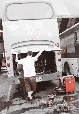 據(jù)維修工人介紹,冒煙的公交車的確出了故障,但問題不大,主要是發(fā)動(dòng)機(jī)排氣管上的空氣壓縮機(jī)壞了,更換新的壓縮機(jī)后就不會(huì)有問題了。記者仔細(xì)觀察了被換下的空氣壓縮機(jī),這是一個(gè)類似于鼓風(fēng)機(jī)的東西,據(jù)說加裝在排氣管上后,可以利用空氣動(dòng)力學(xué)原理在原先的基礎(chǔ)上加大車輛動(dòng)力!氨确秸f原來的柴油機(jī)動(dòng)力是150馬力,加裝了空氣壓縮機(jī)就可以達(dá)到200馬力或者更多。”維修工人說。