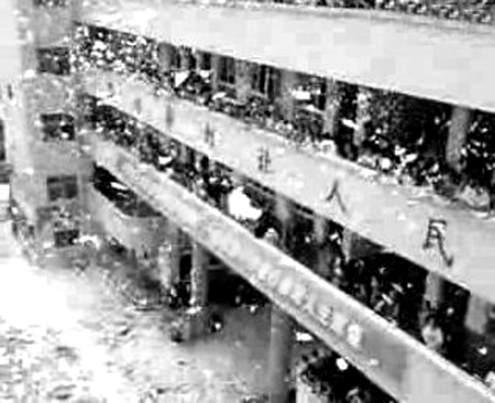 昨日,記者在某著名視頻網(wǎng)站上看到了該視頻:整個(gè)教學(xué)樓一片混亂,不少學(xué)生都將課本、復(fù)習(xí)資料撕掉,從樓上往下扔,紛紛揚(yáng)揚(yáng)的紙片如暴雪一般落下,教學(xué)樓前的空地則全是書本碎片,視頻里還可以聽到學(xué)生的歡呼聲,整個(gè)視頻時(shí)長40秒。