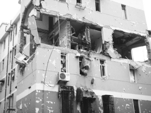 事發(fā)后,樓內(nèi)有居民自行逃出,警方和消防搶險(xiǎn)人員趕到后,從中救出了數(shù)名傷員。爆燃產(chǎn)生的巨大沖擊波,還致使樓房旁一根高約15米的電線桿發(fā)生傾斜。供電部門為安全起見,切斷了整個(gè)小區(qū)的供電。記者在現(xiàn)場(chǎng)看到,一輛電力搶修車已送來(lái)一根新電線桿,準(zhǔn)備待警方勘查完后施工。