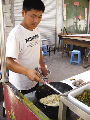 鮑斌是揚大體育學院03級學生,因為家庭經(jīng)濟困難,讀大三的時候,小鮑決定休學創(chuàng)業(yè),選擇的創(chuàng)業(yè)項目是再普通不過的蛋炒飯。他沒有向父母透露半點風聲。在外面租了一間房子,開始了創(chuàng)業(yè)歷程。開始,小鮑的生意不是很景氣,后來,大伙對他的手藝認可后,生意便開始紅火起來。“我每天準備的炒飯都會比別人賣得快,所以經(jīng)常早收攤,算下來,平均一天能賣幾百盒!滨U斌一臉興奮地告訴記者,刨去成本、平常的開銷,每年掙10萬元非常輕松。因為生意越來越火,他給淮安老家的父親打了個電話,請二老過來幫忙。從此兩個老人正式給兒子打起“下手”來。