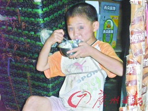 在石棉瓦窩棚的門口,一個(gè)留著短發(fā)、面容清秀的小女孩正捧著一個(gè)飯缽吃飯,不過小女孩卻被一根繩索綁著,繩子的另一頭拴在窩棚的柱子上。