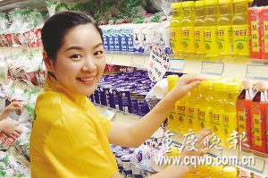“歡迎品嘗新上市的阿苷飲料,買一瓶送紙巾,買兩瓶送紙巾盒……”剛走到超市門口,脆生生的聲音傳過來。循聲望去,一飲料促銷點前,一個扎著小馬尾,穿著小坎肩、運動裙的姑娘托著飲料,正向過往行人推薦。