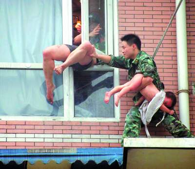 張婆婆講,8時(shí)30分許,她就看見該男子抱著娃娃坐在窗臺(tái)上,好多次都欲往下跳,她的心一直懸著。男子不時(shí)掙扎,讓娃娃的整個(gè)上半身向下傾斜,每當(dāng)這時(shí),娃娃都會(huì)用自己的小手使勁抓住窗戶,驚得圍觀群眾齊聲尖叫。