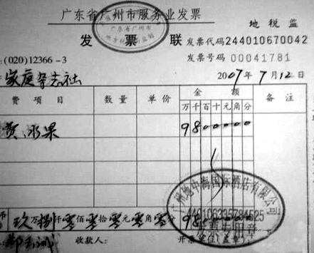 7月12日,一位署名為“小鷗gz”的網(wǎng)友在網(wǎng)上發(fā)表了《以“吃水果”為名給廣東婦聯(lián)開了100多萬(wàn)虛假發(fā)票》的帖子。發(fā)帖者自稱是廣州地中海大酒店員工,偶然發(fā)現(xiàn)地中海大酒店于2007年給“廣東省婦聯(lián)單位家庭雜志社”虛開100多萬(wàn)元的發(fā)票。
