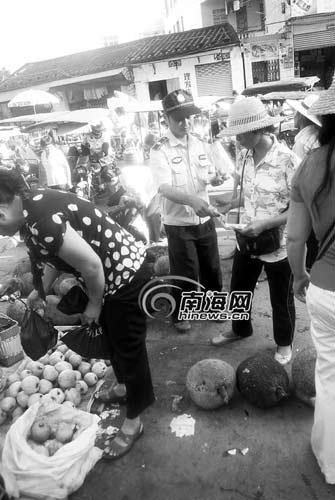 然而,負責市場管理的縣城建監(jiān)察人員不僅不制止亂擺攤行為,而且向這些攤位收了錢后就聽之任之。吳先生說:“定安縣政府發(fā)布《通告》禁止亂擺亂放,這些人還敢這樣違背政府的工作要求,我不知道這到底是為什么?”