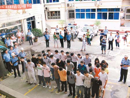 “驚心動(dòng)魄!泵窬诮榻B案情時(shí)反復(fù)用了這樣的詞。一是和時(shí)間賽跑,在嫌疑人就要集體離開(kāi)西安時(shí),警方將他們一舉抓獲。二是在抓捕過(guò)程中也有一些小插曲。專案組獲知個(gè)別嫌疑人藏身明德門一酒店客房?jī)?nèi),隨即派了7名干警前往抓捕,沒(méi)想到民警沖進(jìn)房間時(shí)發(fā)現(xiàn)客房里坐了滿滿一屋子人。為了穩(wěn)住局面,指揮員一方面假稱查傳銷窩點(diǎn),另一方面聯(lián)系增派警力。