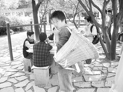 他的背篼,有自己身高的一半那么長,每次放上五六十斤重的大米、糧油,走上差不多兩里地,頂多能賺5元錢。每天,這個大學畢業(yè)生和貴陽街頭的其他“背篼”們一起,躲在瑞金北路能避雨遮陽的沿街屋檐下,或者在華聯(lián)、沃爾瑪一類的地方蹲點,平均一天掙不到20元。