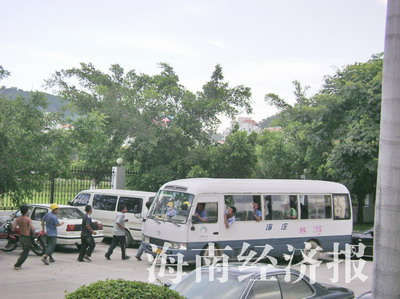 不久,120救護(hù)車(chē)趕到現(xiàn)場(chǎng),拉上9名受傷工人準(zhǔn)備開(kāi)往三亞市人民醫(yī)院。就在救護(hù)車(chē)駛出工地時(shí),一輛車(chē)號(hào)牌為瓊A05912的中巴車(chē)滿(mǎn)載數(shù)十名男子跟蹤其后。救護(hù)車(chē)上的工人們感到害怕,要求120救護(hù)車(chē)開(kāi)進(jìn)三亞市公安局求助。