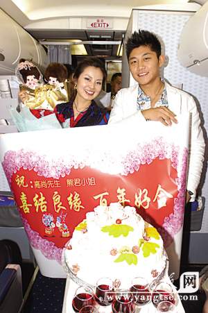 7月25日下午4:00,東航江蘇公司南京—北京的MU2831航班上演繹了一場長達15分鐘的空中求婚儀式。英俊帥氣的北京小伙子高尚先生和年輕貌美的南京姑娘熊君小姐無疑成了當(dāng)日航班上最幸福的人。