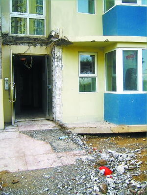 本報訊 據(jù)媒體報道,繼上海的“樓脆脆”后,京版“樓脆脆”也已現(xiàn)身——清河萊鎮(zhèn)香格里小區(qū)的11號樓門廳下陷,墻上破了兩個大洞,引起小區(qū)業(yè)主的擔憂和恐慌。今天上午記者在萊鎮(zhèn)小區(qū)的現(xiàn)場看到,塌陷的門廳已經(jīng)被拆卸。