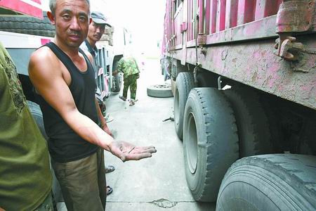 約半小時后,記者趕到京港澳高速鄭州東服務(wù)區(qū)。西側(cè)服務(wù)區(qū)停車場里,仍停有七八輛被扎破輪胎的貨車,每輛車被扎爛輪胎1至3只不等。司機(jī)們一籌莫展,不停嘆氣。