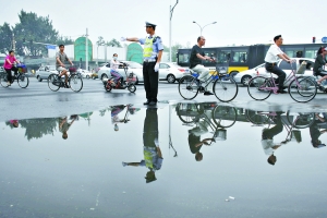 剛開始站崗,小孟手勢打得一塌糊涂,路口亂七八糟;處罰司機(jī),司機(jī)沒怎么樣,他先不好意思,最多瞟對方一眼,再不敢抬頭。