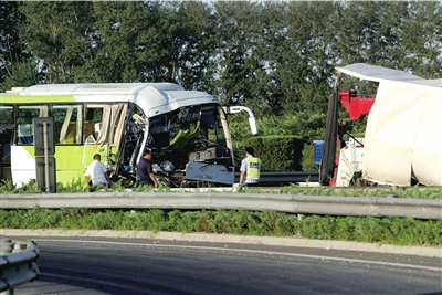 昨天下午5點(diǎn)左右,在京承高速黃港出口附近,一輛從懷柔駛來(lái)的916路公交車(chē),與一輛運(yùn)水貨車(chē)追尾,事故造成公交車(chē)上20多人受傷。