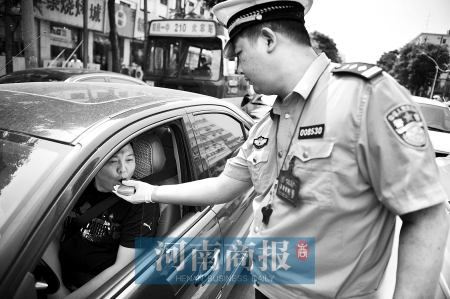 昨日下午1時(shí)40分許,在鄭州市大學(xué)路與淮河路交叉口,司機(jī)唐某駕駛一輛黑色越野車在路口被交警三大隊(duì)大隊(duì)長(zhǎng)朱則軍攔下。經(jīng)現(xiàn)場(chǎng)酒精呼吸測(cè)試,已達(dá)到醉酒標(biāo)準(zhǔn)。當(dāng)民警問他是否知道最近在嚴(yán)查酒后駕駛時(shí),唐某說:“想著星期天交警都休息了,沒人查了,沒想到還是被查了。警察星期天不休息嗎?”