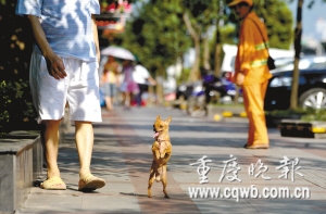 據(jù)了解,狗狗直立行走迄今是謎,如此行走是否給動(dòng)物帶來傷害,專家正在研究。 (黃艷春)