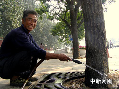 負責澆灌長安街沿路綠樹和花卉的工人侯立昌,每天從早上6點一直工作到晚上7點!皣鴳c人手不夠,咱們都得加班了”,61歲的侯立昌笑著告訴記者,每天澆完近60棵樹后,他都會加班參加鋪草坪、栽種花卉等工作。他說,加班從晚上11點開始,最短兩小時,最長要工作到凌晨三四點。