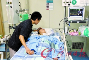 王素容的主治醫(yī)生徐醫(yī)生告訴記者,王素容因為重型顱腦損傷,已經(jīng)是植物人狀態(tài),什么知覺都沒有了,要想她蘇醒只能等奇跡。曾紹勇仍然在等待這個奇跡。