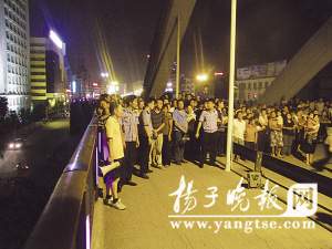 5日下午5點(diǎn)30分左右,正是下班的高峰期,丹陽(yáng)城區(qū)中心的云陽(yáng)大橋上車水馬龍,人流如梭。就在此時(shí),一名年輕男子手拿酒瓶,歪歪扭扭,面紅耳赤,推著一輛自行車,來(lái)到橋上。將車靠上橋欄后,該男子竟徒手攀爬橋拱,路人以為此人是維修大橋的,也沒(méi)有太在意,但不一會(huì),該男子居然爬到橋頂,大聲喊叫:“我要跳橋!”路上行人紛紛駐足觀望,很快大橋上就聚集了上百名路人,且越來(lái)越多的市民堵在橋上,開(kāi)始替該男子擔(dān)心起來(lái),見(jiàn)男子左右搖擺,橋上市民驚叫聲不斷。大橋之上,很快出現(xiàn)擁堵現(xiàn)象,直至無(wú)法通行。有人立即報(bào)警。