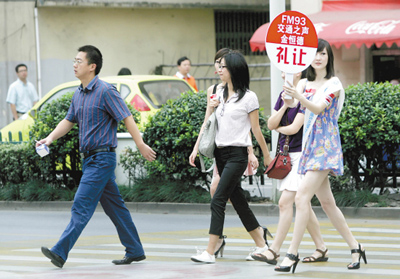 這些美女是第59屆世界小姐浙江區(qū)總決賽的佳麗,總共36人。昨天,她們分別在杭城的8條“愛心斑馬線”上當起了宣傳禮讓的公益使者。