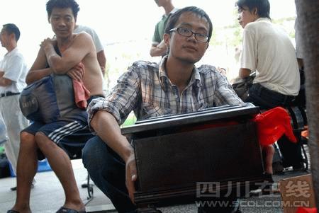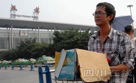 今年20歲的顧明軍來自涼山州會理縣一個小村莊,來成都半年,做電工的他沒有找到合適工作,就在一個小餐館打工。幾天前,家中來電話讓他回家。昨天早上9點(diǎn)半,顧明軍就到了火車北站,準(zhǔn)備買下午1點(diǎn)回老家的車票。買了票,顧明軍看見廣場上圍著一群人。“到底有啥子好看的?”顧明軍撥開人群,發(fā)現(xiàn)樹下躺著一個紙箱子,箱里有個盒子,上面有塊紅布!吧蹲?xùn)|西哦?”“骨灰盒,不曉得哪個掉了的!”“看到就晦氣,哪個愿意動它!迸赃呉晃荒弥鴴咧愕拇蠼阏f,8日晚上就有人發(fā)現(xiàn)這個骨灰盒躺在樹下,沒人敢動!肮腔液?”顧明軍發(fā)現(xiàn)盒子已經(jīng)被人拆開,周圍粘滿了泥土!疤炷趿耍ナ篮缶谷贿@樣悲慘。”顧明軍走上前去,撿起骨灰盒小心翼翼地放進(jìn)紙箱,并蓋好了蓋子,“人死了,骨灰不能被風(fēng)吹掉!鳖櫭鬈婇_始查看骨灰盒,試圖找到聯(lián)系方式,但除了外包裝上有“歐式別居”4個手寫的字外,沒有任何線索。
