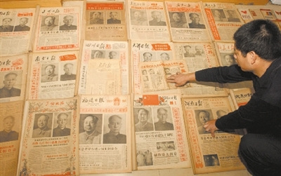 “國慶方面各類報(bào)紙就有2噸,多從要搬家的機(jī)關(guān)事業(yè)單位,或者廢品收購站購來的!睏钕栾w說,收藏國慶報(bào)道的報(bào)紙,他花了13萬元左右。
