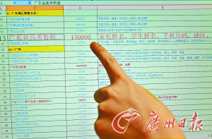 在這份數(shù)據(jù)庫中,記者發(fā)現(xiàn)了一份15萬人的廣東高考數(shù)據(jù),包括家長和學(xué)生姓名、手機(jī)號碼等。群發(fā)公司工作人員表示,這個(gè)數(shù)據(jù)是今年最新的,并且暗示“現(xiàn)在剛開學(xué),對學(xué)生家長發(fā)‘銀行轉(zhuǎn)賬類’的挺合適”。
