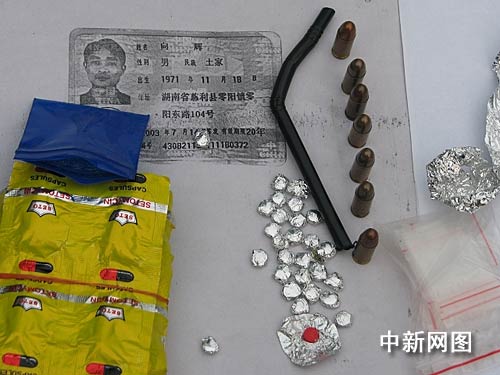 中新網(wǎng)長沙9月16日電 (歐陽浩亞 佘飛) 9月15日凌晨,一輛途經(jīng)湖南境內(nèi)長常高速公路的小車因司機操作不當(dāng)撞向了中央隔離護欄,這原本是一起普通的車禍,但高速交警在處理事故過程中卻發(fā)現(xiàn)了重重疑點,民警當(dāng)即對事故車輛和人員進行檢查,竟搜出了手槍子彈、毒品、吸食工具等物品。