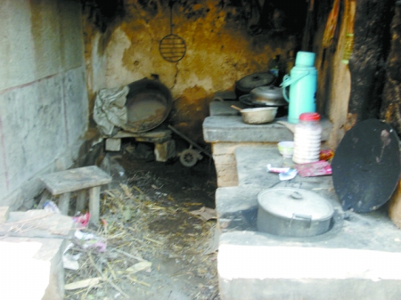老人有關節(jié)炎,但一家的重擔都壓在他肩上。李廣的老伴去年冬天下山采購年貨時摔倒了,摔傷了頭和胳膊,除了基本的自理外,已經(jīng)不能做重活了。因家庭貧困,沒錢買更好的藥,現(xiàn)在老伴主要靠吃一些止痛藥來遏止病痛。殘疾智障的兒子更需治療。他們在山頂辟出的三兩畝地,已無法養(yǎng)活這個家。