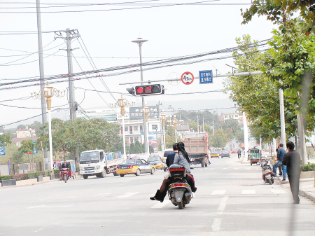 10月8日,一位從華山大街向東行的外地司機把車停在民生街丁字口的紅燈前,不知道如何是好。原來前方的紅燈亮著,但是旁邊的藍牌子上卻寫著“紅燈亮時 直行通過”,他看著身邊的車既有飛馳通過的,還有停車觀望的,更多的是半停半走猶豫不決的。所以不知道該怎么辦。而渭南的出租車司機老胡說,這個紅綠燈堪稱“最!,設立得根本就不科學,設立這么一個牌子,難道旁邊還要再加個牌子說綠燈亮時繼續(xù)通行?當?shù)厝舜蠖济靼,這個紅綠燈設立的目的是限制向北拐的,只要把紅綠燈設置個向北的箭頭就可以了,而弄個紅燈加個說明有些自相矛盾。記者查閱《中華人民共和國道路交通安全法》,第二十六條規(guī)定:“交通信號燈由紅燈、綠燈、黃燈組成。紅燈表示禁止通行,綠燈表示準許通行,黃燈表示警示!