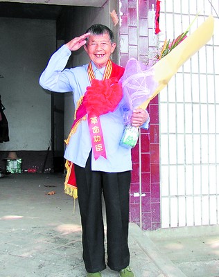 昨日,記者在民政部優(yōu)撫安置局制訂的新中國成立60周年觀禮名單上看到,在49個(gè)人中,湖南就有兩人。“另一位是益陽市離休老干部、二級(jí)傷殘軍人姚杰生……不過,我是這49人中年齡最大的一個(gè)!睆埨献院赖卣f。
