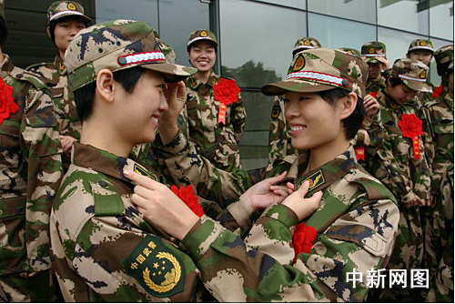 今年是女兵征集辦法改革的第一年,也是全國普遍面向社會征集女兵的第一年,建國60周年閱兵式上女兵的颯爽英姿,更加催生了這股“女兵熱”。記者從華東師大了解到,到報名截止日該校共有兩百零九名女大學(xué)生報名參軍,創(chuàng)該校歷年之最。最終圓夢的46名女大學(xué)生有來自軍人世家、四川災(zāi)區(qū),也有首批免費師范生。