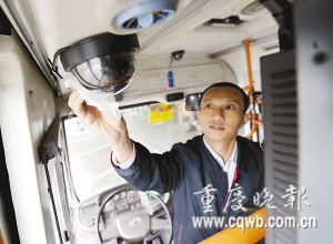 昨上午,記者在白公館起點站,看到了剛安裝好攝像頭的210路公交車。